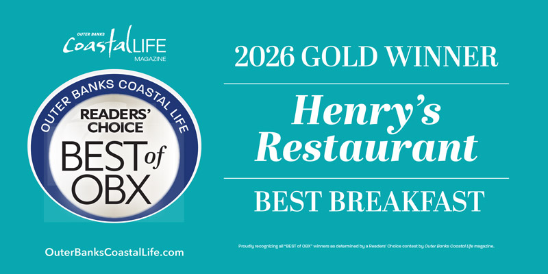 A family business focused on welcoming other families, Henry’s takes pride in offering a clean, down-to-earth atmosphere with pleasant and accommodating staff, many of whom have been with us for 20 years or more. For more than 30 years, three generations of the Henry’s family have worked to build a loyal clientele of locals and visitors, many of whom dine with us daily or several times a week during their annual Outer Banks vacations. Our customers tell us it’s the quality of the food and the affordable prices, along with the welcoming staff, that keeps them coming back again and again. We welcome everyone with smiling faces and can’t wait to meet your family for breakfast, lunch and dinner in house or for take-out every day year-round.